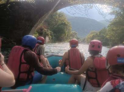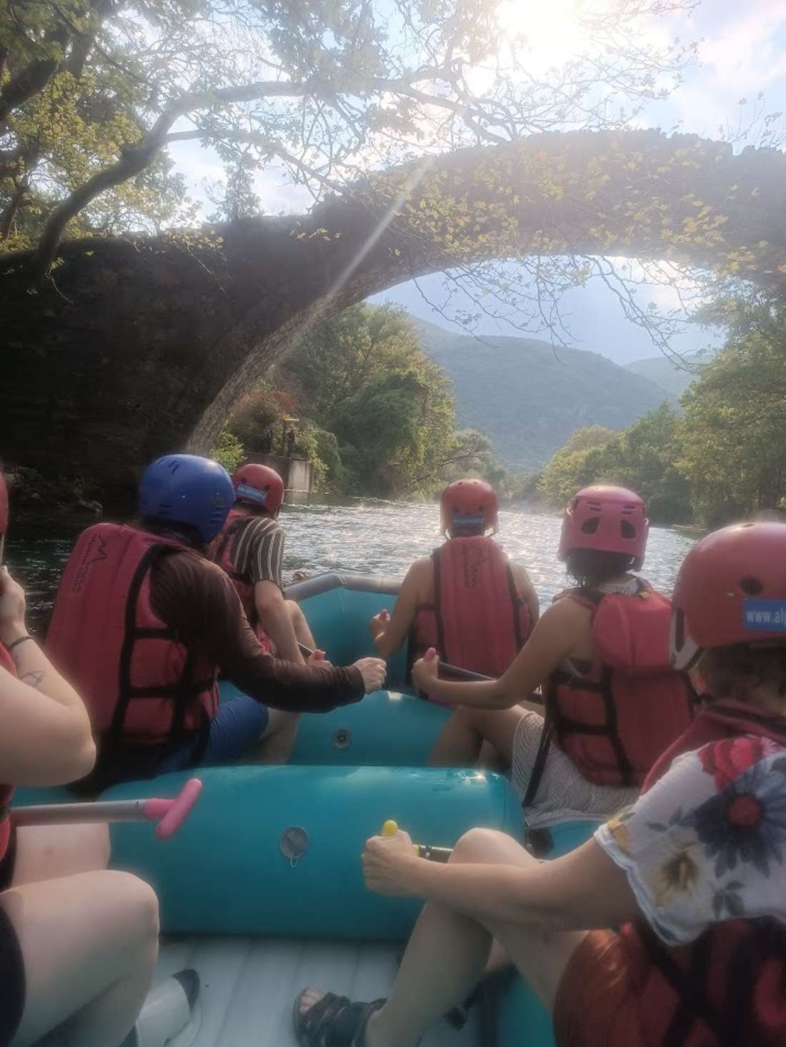 On the 8th of July, the team of The Land Beyond gladly welcomed 30 students who participated in the Summer Greek Language and Culture Program, students of the Summer Greek Language and Culture Program for Epirotes abroad and Expatriates of Georgia. This was a program of the Center for the Study of Hellenic Language and Culture (HeLaS) of DI.K.E.P.P.E.E. « Stavros Niarchos» of the University of Ioannina that aims to promote the epirotic cultural heritage, strengthen the bonds with the Epirotes abroad as well as their contact with the Greek language and culture. For years, the Center has been developing educational and research activities with the main focus on the love of the Greek language and Greek culture, intercultural and multicultural contact and interaction of young people from all over the world with a vision of peace and friendship between peoples. In the framework of the Summer Program, two very beautiful actions took place in the area of Zagori. The students enjoyed a Walking & Talking hike by Mr. Nicos Yannis to the monastery of Prophet Ilias, admired the unobstructed view of Monodendri, were guided around the sites of The Land Beyond, were informed about the history of the building and the surrounding area and generally lived a special experience. On Thursday, July 11th, the students went for rafting on the Voidomatis River in a mysterious atmosphere, as the light rain made the place even more evocative and impressive!